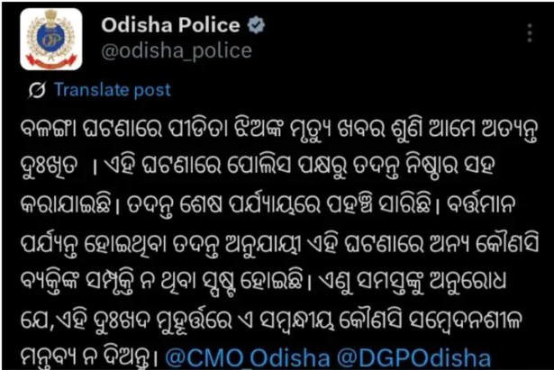 ଶବ ବ୍ୟବଚ୍ଛେଦ ପରେ ତାଙ୍କ ମୃତଦେହକୁ ଓଡ଼ିଶା ଅଣାଯିବ ବୋଲି ସୂଚନା ମିଳିଛି। ସେପଟେ ବଳଙ୍ଗା ପୀଡ଼ିତାଙ୍କ ମୃତ୍ୟୁରେ ମୁଖ୍ୟମନ୍ତ୍ରୀ ମୋହନ ଚରଣ ମାଝୀ ଶୋକ ପ୍ରକାଶ କରିଛନ୍ତି। ସେ ତାଙ୍କ ‘ଏକ୍ସ’ରେ ଲେଖିଛନ୍ତି, ବଳଙ୍ଗା ଘଟଣାରେ ପୀଡ଼ିତା ଝିଅଟିର ମୃତ୍ୟୁ ଖବର ଶୁଣି ମୁଁ ଗଭୀର ଭାବେ ମର୍ମାହତ। ସରକାରଙ୍କ ସମସ୍ତ ପ୍ରୟାସ ଏବଂ ଏମ୍ସ ଦିଲ୍ଲୀରେ ବିଶେଷଜ୍ଞ ଡାକ୍ତରୀ ଦଳଙ୍କ ଅହୋରାତ୍ର ଚେଷ୍ଟା ସତ୍ତ୍ୱେ ତାଙ୍କ ଜୀବନ ରକ୍ଷା କରାଯାଇ ପାରିଲା ନାହିଁ। ମୁଁ ଝିଅଟିର ଅମର ଆତ୍ମାର ସଦଗତି କାମନା କରୁଛି ଏବଂ ଏହି ଅପୂରଣୀୟ କ୍ଷତିକୁ ସହିବା ପାଇଁ ତାଙ୍କ ପରିବାରକୁ ଶକ୍ତି ମିଳୁ ବୋଲି ଈଶ୍ବରଙ୍କ ନିକଟରେ ପ୍ରାର୍ଥନା କରୁଛି।