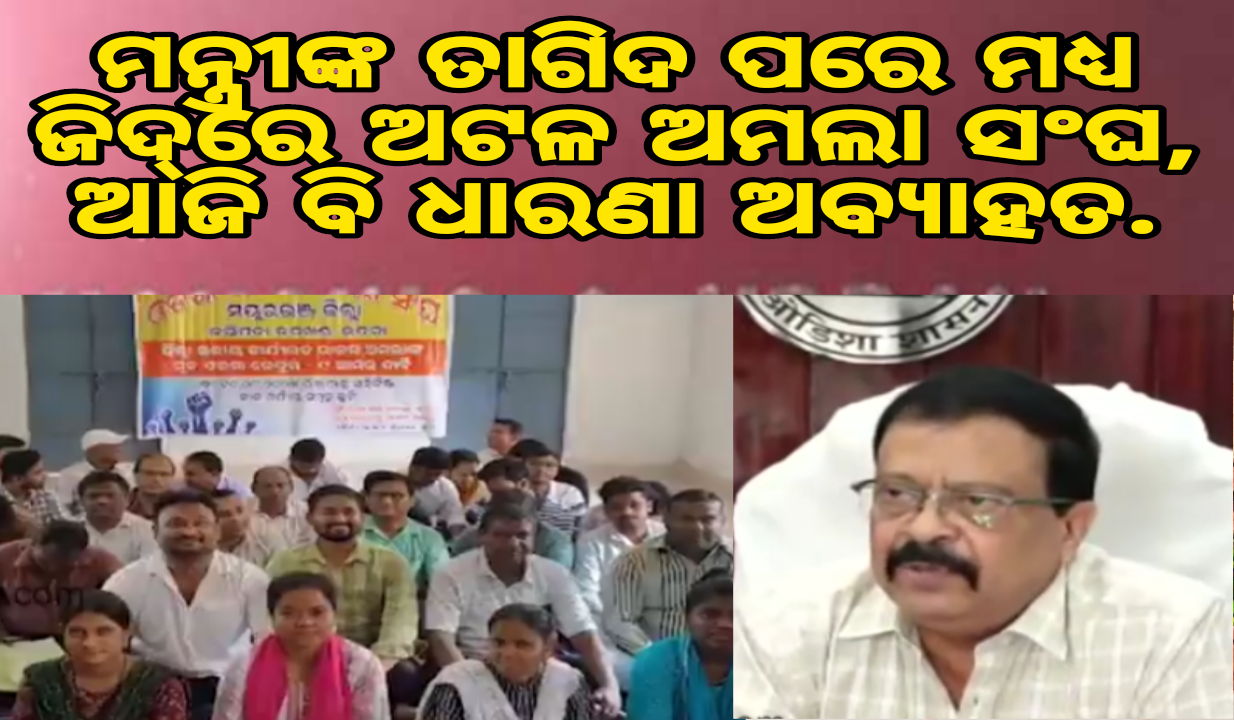 କାର୍ଯ୍ୟରେ ଅବହେଳା ହେଲେ ଦରମା ବନ୍ଦ ହେବ ବୋଲି ଧମକ ଦେଇଥିଲେ ମନ୍ତ୍ରୀ। ହେଲେ ତାଗିଦ ସତ୍ବେ ଆଜି ପୁଣିଥରେ ଧାରଣାରେ ବସିଛନ୍ତି ଅମଲା ।