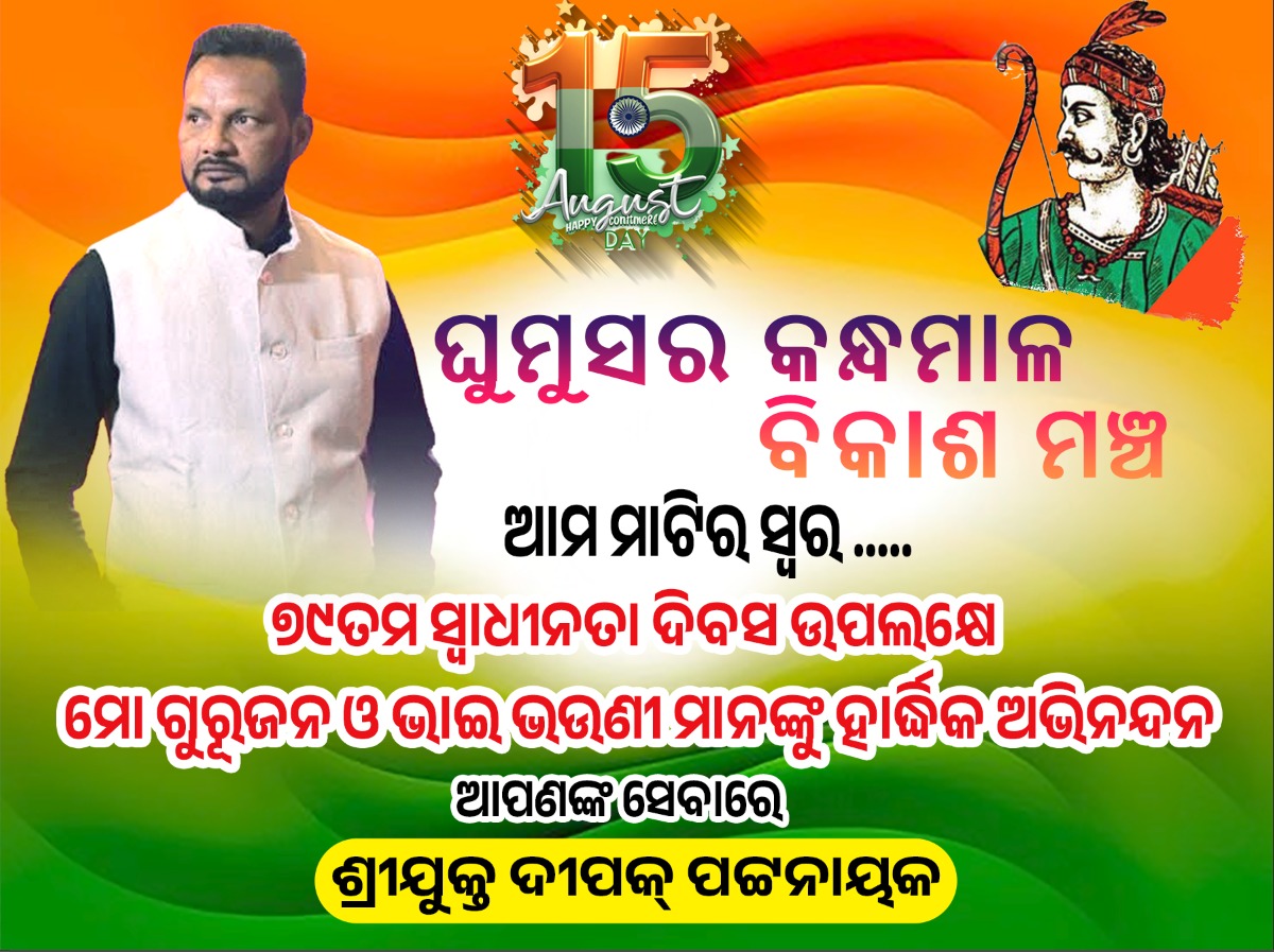 ଭଞ୍ଜନଗର : ଜେଏମଜେନ୍ୟୂଜ) ଘୁମୁସର କନ୍ଧମାଳ ବିକାଶ ମଞ୍ଚ ଦ୍ଵାରା ୭୯ ତମ ସ୍ୱାଧୀନତା ଦିବସ ଭଞ୍ଜନଗର ବ୍ଲକ ଢୁଢୁଆ ଗ୍ରାମ ଠାରେ ଅନୁଷ୍ଠିତ ହୋଇଥିଲା।ଦୀପକ କୁମାର ପଟ୍ଟନାୟକ ଙ୍କ ସଭାପତିତ୍ୱରେ କାର୍ଯ୍ୟକ୍ରମ ରେ ବହୁ ସଦସ୍ୟ ଓ ବିଦ୍ୟାଳୟ ଛାତ୍ରଛାତ୍ରୀ ଯୋଗ ଦେଇଥିଲେ।ଏହି ଘୁମୁସର କନ୍ଧମାଲ ବିକାଶ ମଞ୍ଚ ର ମୂଳ ଲକ୍ଷ୍ୟ ଘୁମୁସର ଓ କନ୍ଧମାଳ ର ବିଭିନ୍ନ ନ୍ୟାର୍ଯ୍ୟ ଦାବିକୁ ସରକାରଙ୍କୁ ଅବଗତ କରାଇବା।ଅନୁଷ୍ଠାନ ର ଆବାହକ ଙ୍କ ସୂଚନା ଅନୁସାରେ ଏହି ମଞ୍ଚ ଓଡ଼ିଶାର ବିଭିନ୍ନ ସ୍ଥାନରେ ଅଞ୍ଚଳ ର ବିକାଶ ପାଇଁ ସରକାର ଙ୍କ ପାଖରେ ଦାବି ରଖି ଆସିଛି।ତାହା ବ୍ରହ୍ମପୁର କନ୍ଧମାଳ ରେଳ ପ୍ରକଳ୍ପ ହେଉ କିମ୍ବା ସ୍ୱତନ୍ତ୍ର ଘୁମୁସର ଜିଲ୍ଲା ଦାବି।ଆଜି ସ୍ୱାଧୀନତା ଦିବସରେ ବିଦ୍ୟାଳୟ ଛାତ୍ର ଛାତ୍ରୀ ମାନଙ୍କୁ ମିଠା ବଣ୍ଟନ ହୋଇଥିଲା।ଏହି ଅବସରରେ ବିଶ୍ୱନାଥ ପାତ୍ର, ସୁବୋଧ କୁମାର ଗୌଡ଼, ଅମରେଶ ପଟ୍ଟନାୟକ, କୃଷ୍ଣଚନ୍ଦ୍ର ରାଉତ, ସୁର୍ଯ୍ୟ ନାରାୟଣ ନାୟକ, ରାମ ଚନ୍ଦ୍ର ସାହୁ,ଗୌତମ ପ୍ରଧାନ ,ଚନ୍ଦନ ପ୍ରଧାନ ସରୋଜ ରାଉଳ ପ୍ରମୁଖ ଯୋଗ ଦେଇଥିଲେ।