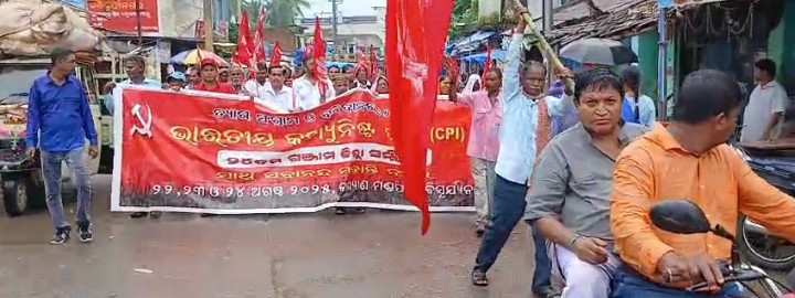 ତ୍ୟାଗ, ସଂଗ୍ରାମଓ ବଳିଦାନ ର 100 ବର୍ଷ ପୂର୍ତ୍ତି ଅବସରରେ ଆୟୋଜିତ ତିନିଦିନିଆ ସମ୍ମିଳନୀ ଆଜି ଆରମ୍ଭ ହୋଇଯାଇଛି, ଶହ ଶହ କର୍ମୀ ନେତା କବିସୂର୍ଯ୍ୟନଗର ସହର ରେ ଶୋଭାଯାତ୍ରା କରି କେନ୍ଦ୍ର ନେତୃତ୍ବାଧୀନ ସରକାର ଙ୍କ ଜନମାରଣ ନୀତି ବିରୁଦ୍ଧରେ ନାରା ଦେଇ ଜନତାଙ୍କୁ ସଚେତନ କରାଇଥିବା ଜଣାଯାଇଛି..