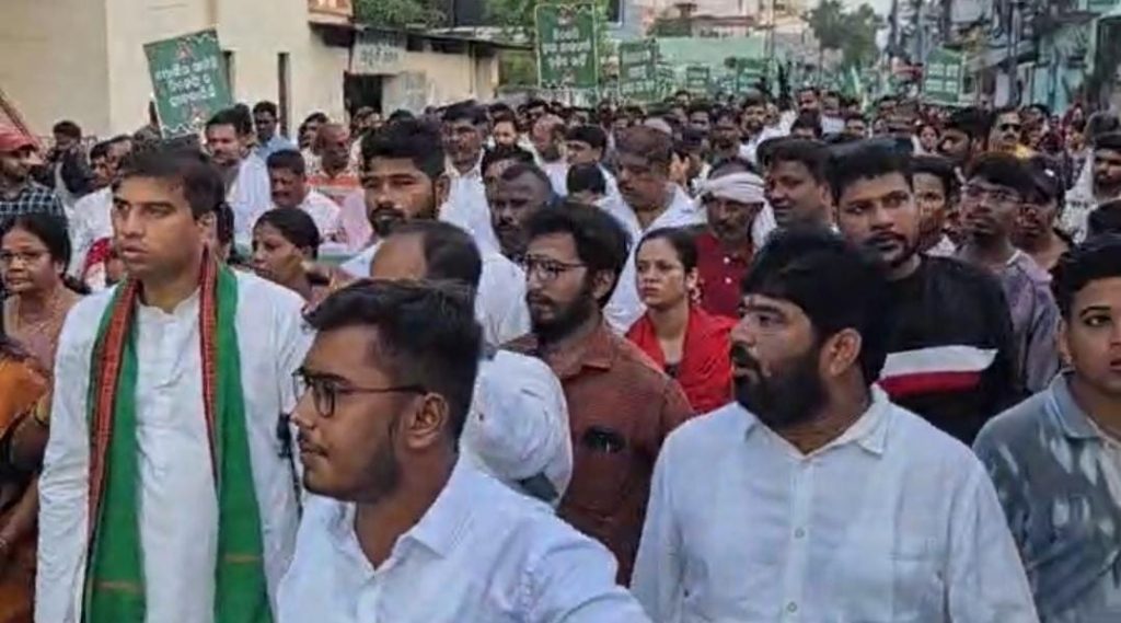 ବ୍ରହ୍ମପୁର:(ଜେଏମଜେ ବ୍ୟୁରୋ): ଆଇନଜୀବୀ ତଥା ବିଜେପି ନେତା ପୀତବାସ ପଣ୍ଡାଙ୍କ ହତ୍ୟା ଘଟଣାରେ ପୂର୍ବତନ ବ୍ରହ୍ମପୁର ବିଧାୟକ ତଥା ବିଜେଡି ଜିଲା ସଭାପତି ବିକ୍ରମ କୁମାର ପଣ୍ଡାଙ୍କୁ ଗିରଫ ପ୍ରତିବାଦରେ ବିଜେଡି ତରଫରୁ ଗୁରୁବାର ବ୍ରହ୍ମପୁରରେ ବିଶାଳ ଶୋଭାଯାତ୍ରା ସହ ବିକ୍ଷୋଭ ଅନୁଷ୍ଠିତ ହୋଇଥିଲା। ଅପରାହ୍ନରେ ଦଳର ବହୁ ନେତା ଓ କର୍ମୀ ହିଲ୍ପାଟଣାସ୍ଥିତ ଗଣେଶ ମନ୍ଦିର ପାଖରୁ ଏକ ଶୋଭାଯାତ୍ରାରେ ସହର ପରିକ୍ରମା କରିବା ପରେ ଗାନ୍ଧୀନଗର ଛକ ଠାରେ ପହଞ୍ଚିଥିଲେ।